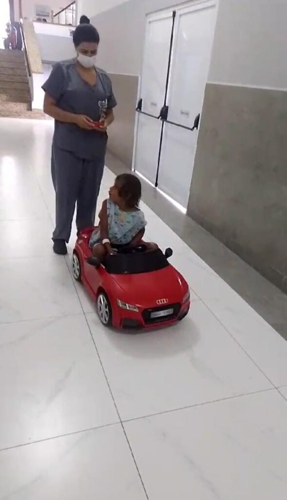 Na manhã de sexta-feira (25/10), o pequeno João Pedro foi encaminhado para o Centro Cirúrgico da Santa Casa de uma forma diferente: em um carrinho elétrico!